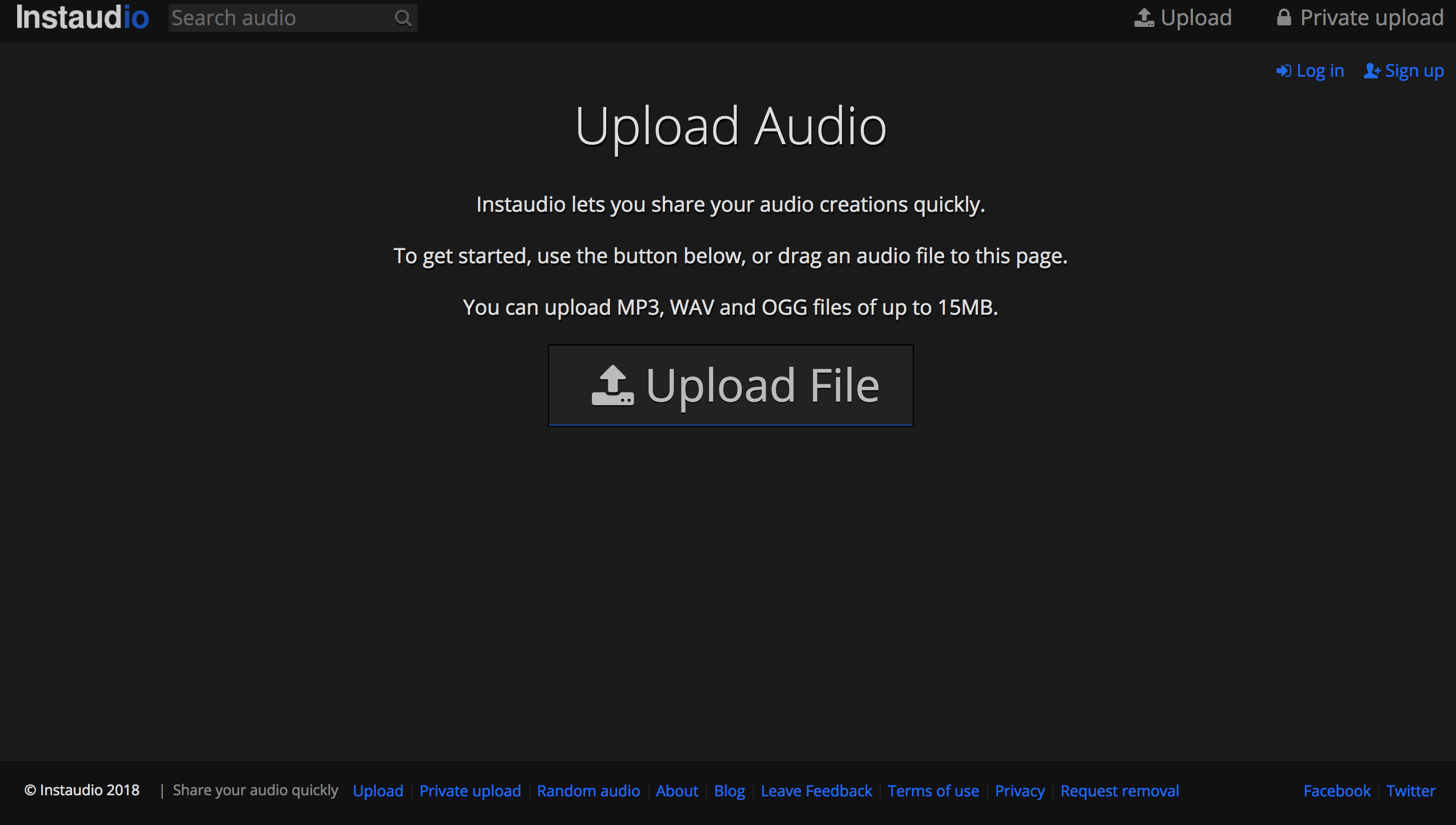 موقع مميز لرفع الصوتيات ومشاركتها مع من تريد، يتميز بسهولة وسرعة الرفع، فقط ارفع أي مقطع صوتي من جهازك ثم انسخ الرابط لنشره مجاناً.