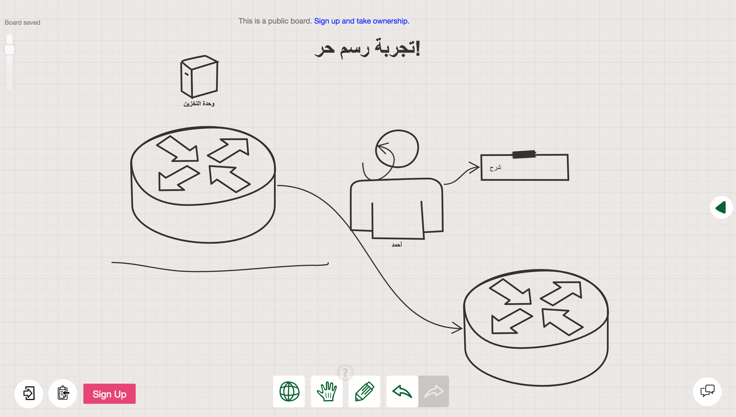 خدمة مميزة تتيح لك الرسم الحُر على لوحة إلكترونية مجاناً، مناسب بشكل كبير إذا أردت رسم شرح أو انفوجرافيك بطريقة جميلة وسهلة جداً وتدعم العربي..