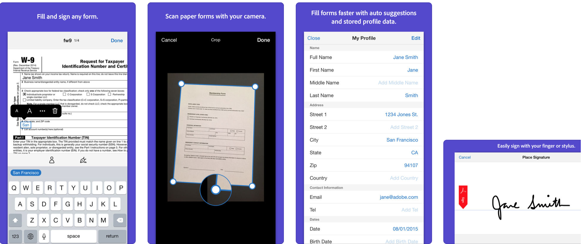 قامت شركة Adobe بإصدار تطبيق مجاني متميز يتيح لك توقيع أي مستند عبر جوالك مباشرة أو تعبئة الفراغات فيه بشكل سهل، ثم مشاركته من تريد..