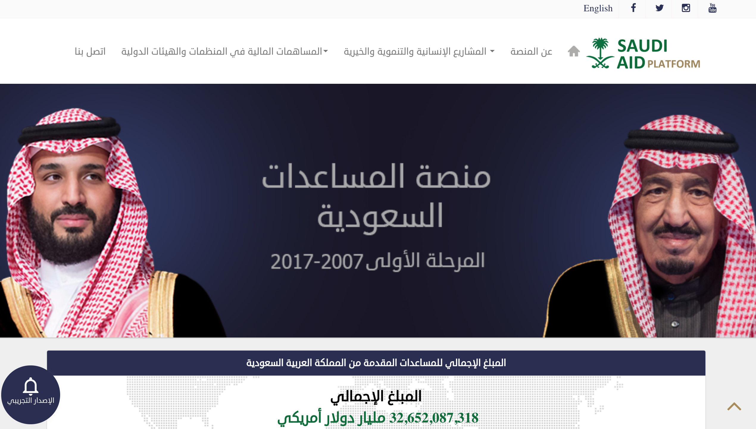 توثيقاً لمسيرة المملكة الإنسانية، خادم الحرمين الشريفين يدشن منصة المساعدات السعودية وهي منصة توثّق الجهود العظيمة للمملكة في مساعدة الدول والمنظمات الإنسانية حول العالم.