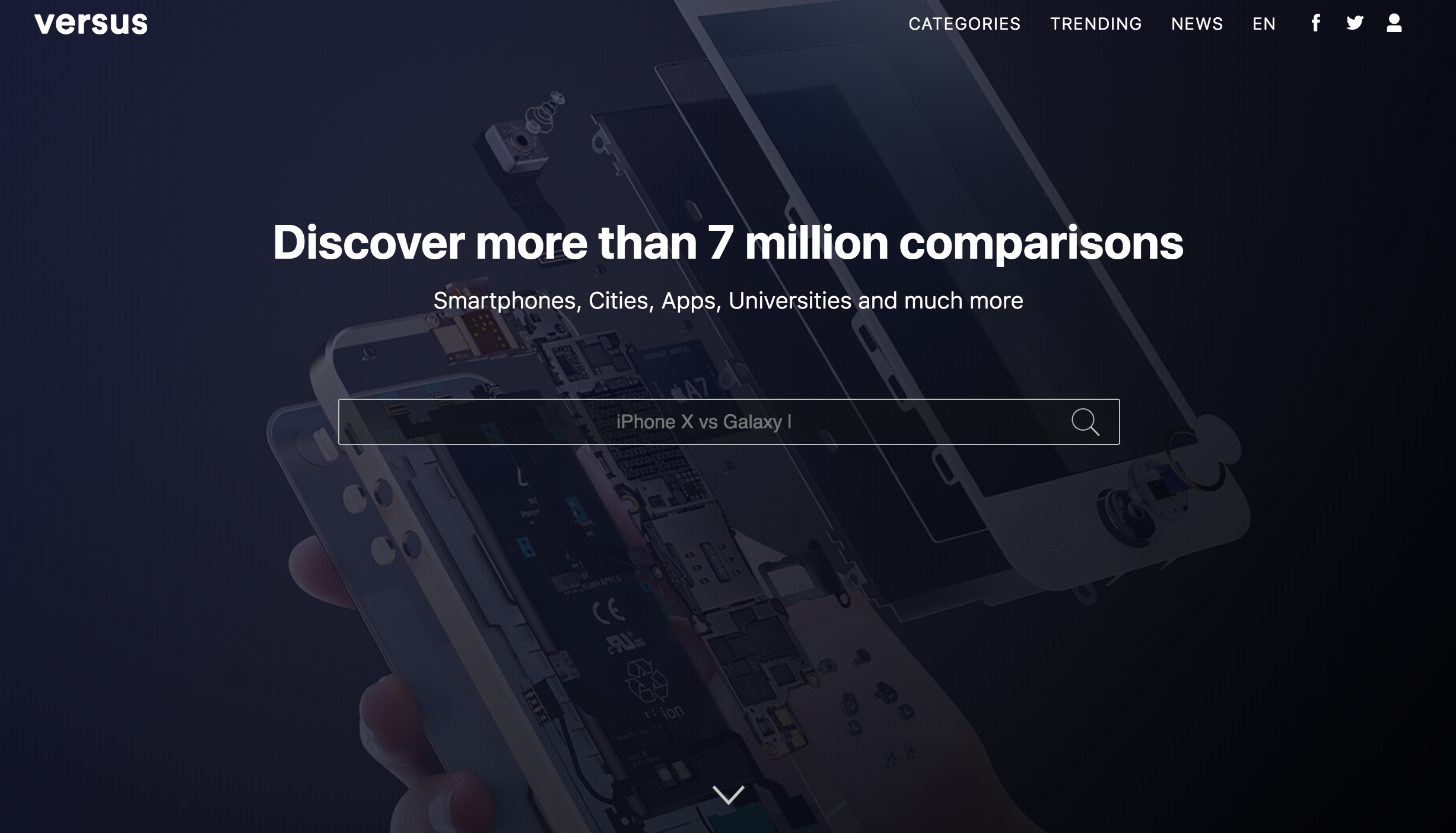 موقع مميز يقارن لك بين أكثر من ٧ ملايين شيء حول العالم، جوالات وكمبيوترات وسيارات ومدن وفواكه ومشروبات وغيرها كثير