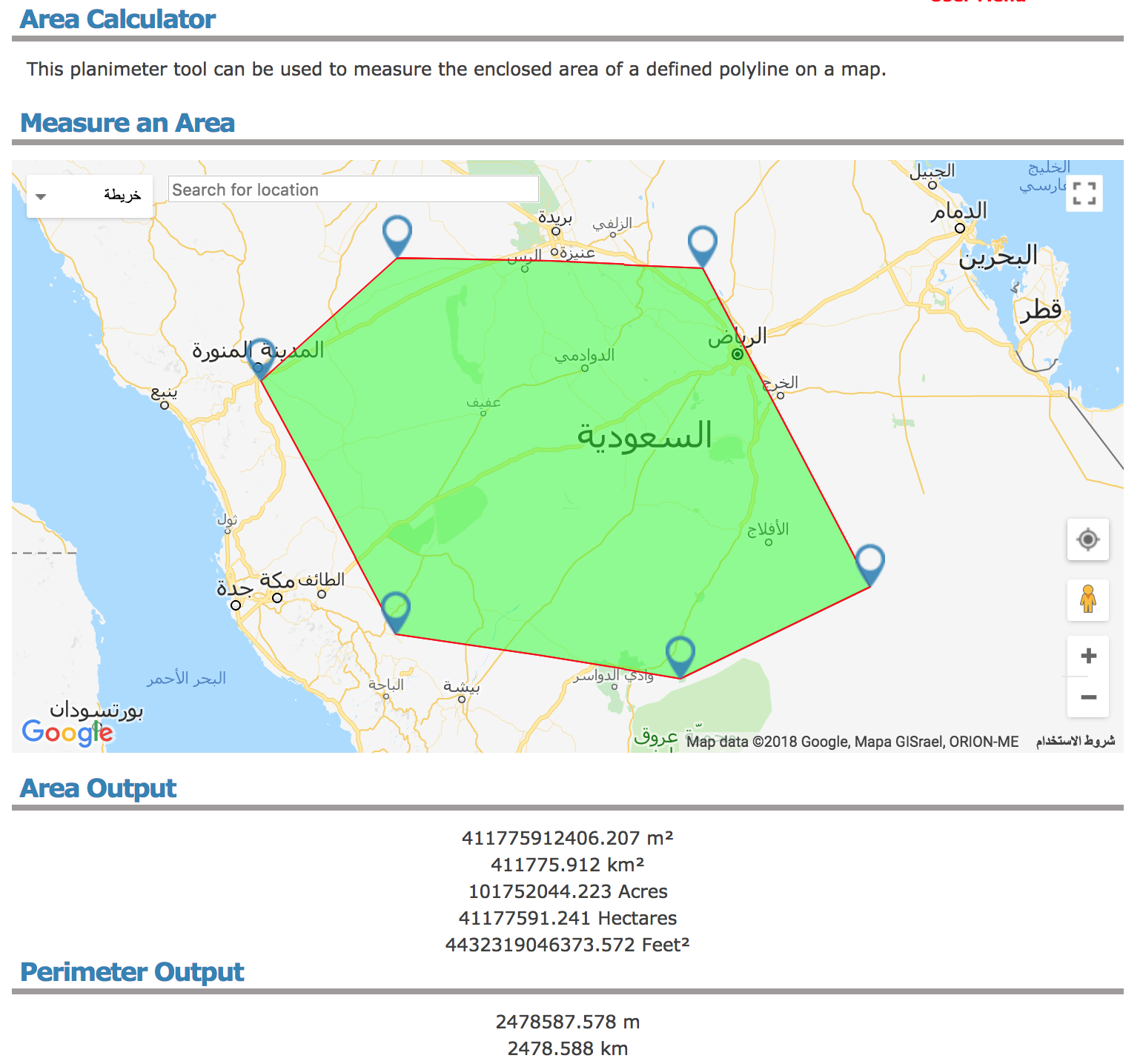خدمة تسمح لك بحساب أي مساحة على الخريطة بالمتر المربع على خرائط جوجل فقط حدد المساحات وستظهر لك القياسات في أسفل الخريطة بالتفصيل.
