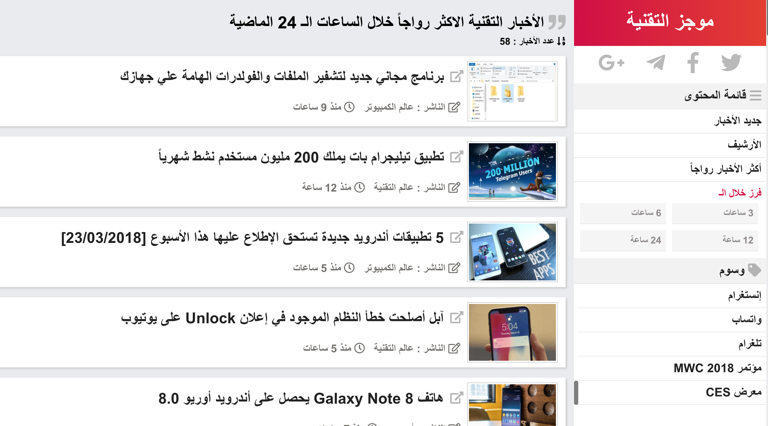 للمهتمين بآخر الأخبار التقنية، هذه الصفحة تعطيك بشكل دوري آخر الأخبار التقنية باللغة العربية، ويتم تحديثها كل ساعة تقريباً.