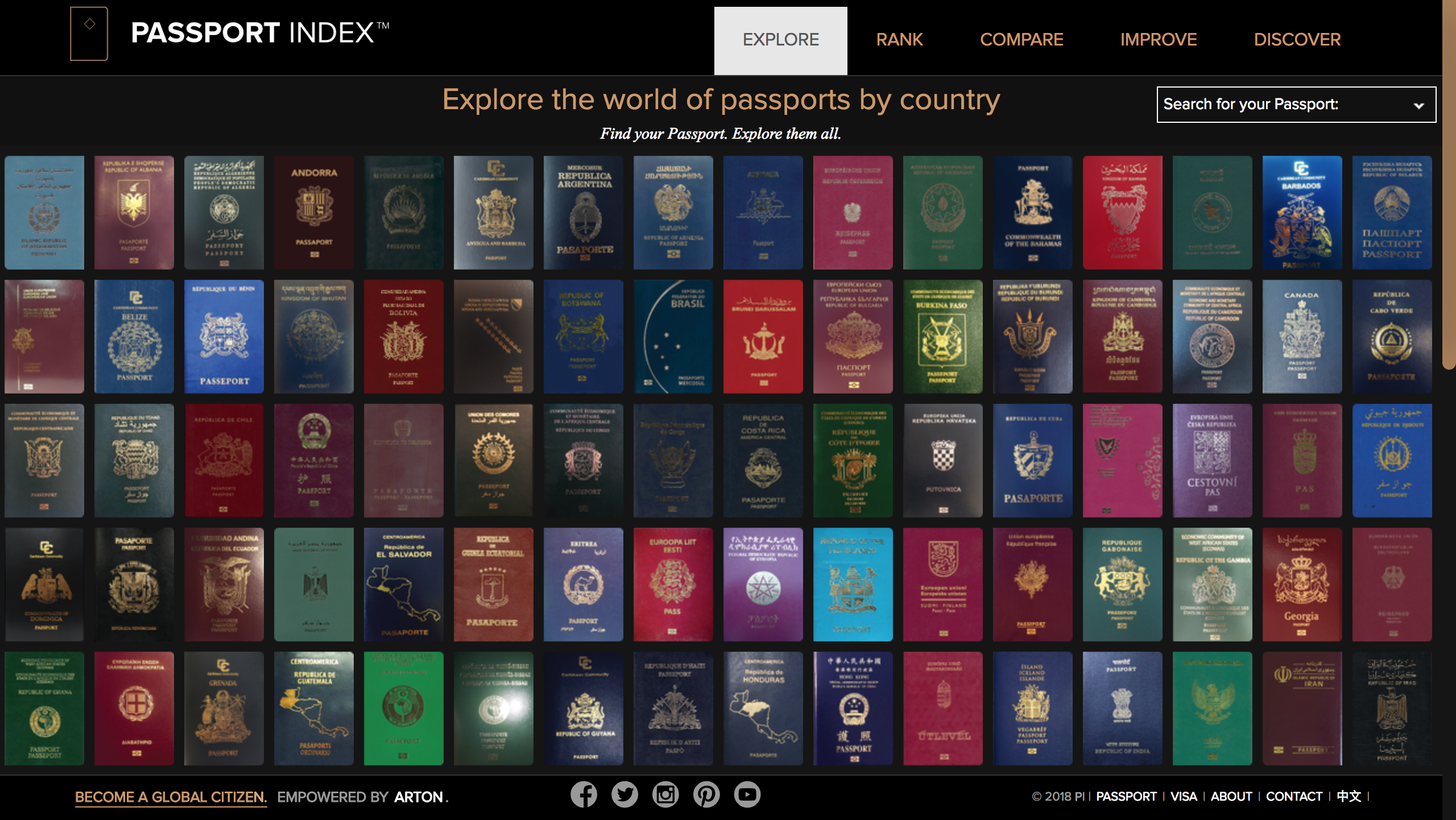 خدمة لمعرفة قوّة أي جواز سفر في العالم، فيمكنك اختيار الجواز وسيخبرك الموقع كم عدد الدول المسموحة لهذا الجواز بدخولها دون تأشيره وترتيب قوّته عالميّاً.