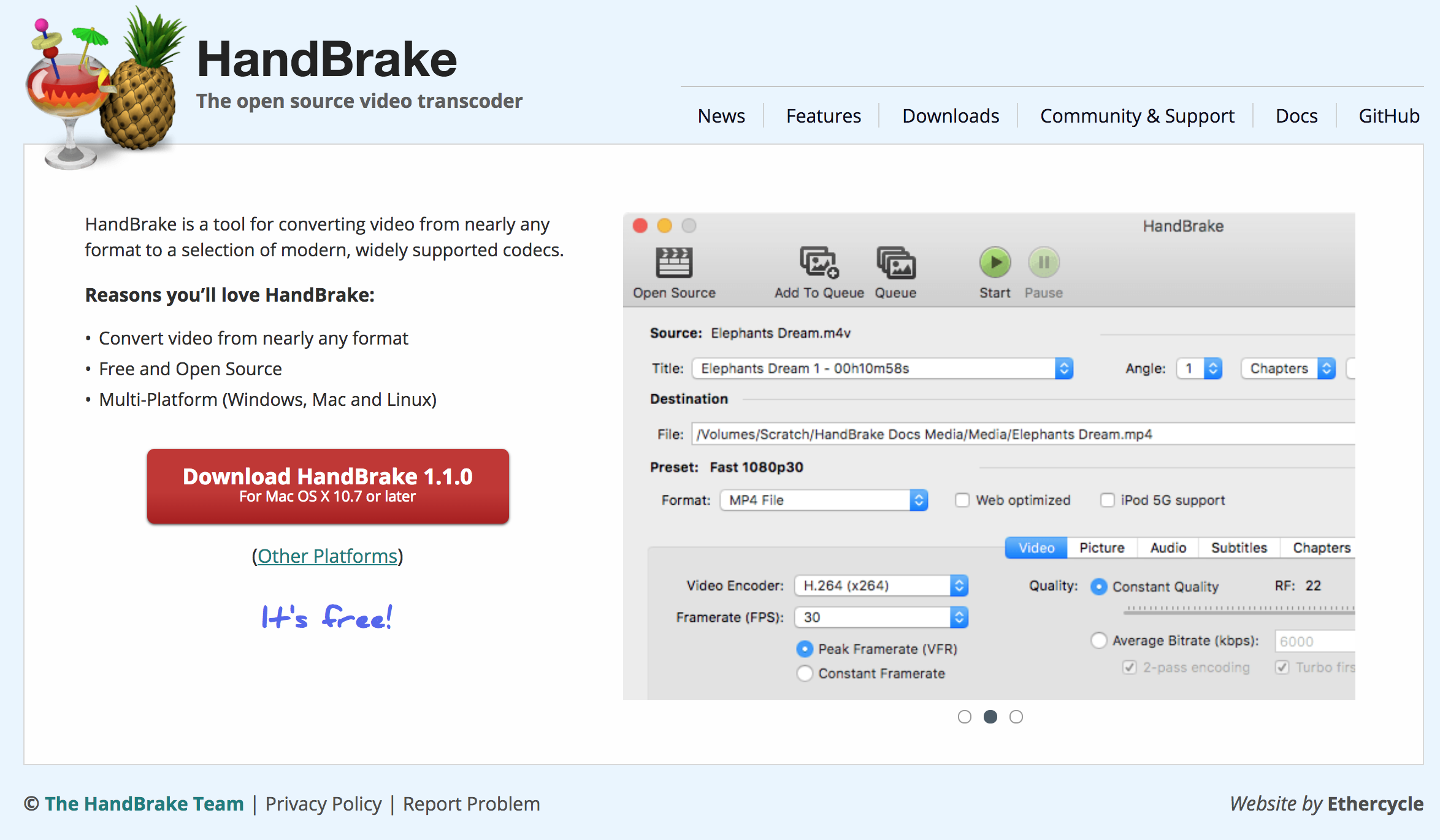 برنامج خفيف ومجاني لتحويل أي صيغة فيديو تريدها، وكذلك إمكانية تصغير حجم الفيديو وتعديل دقّته وإضافة ترجمة عليه وغيره كثير من المزايا.