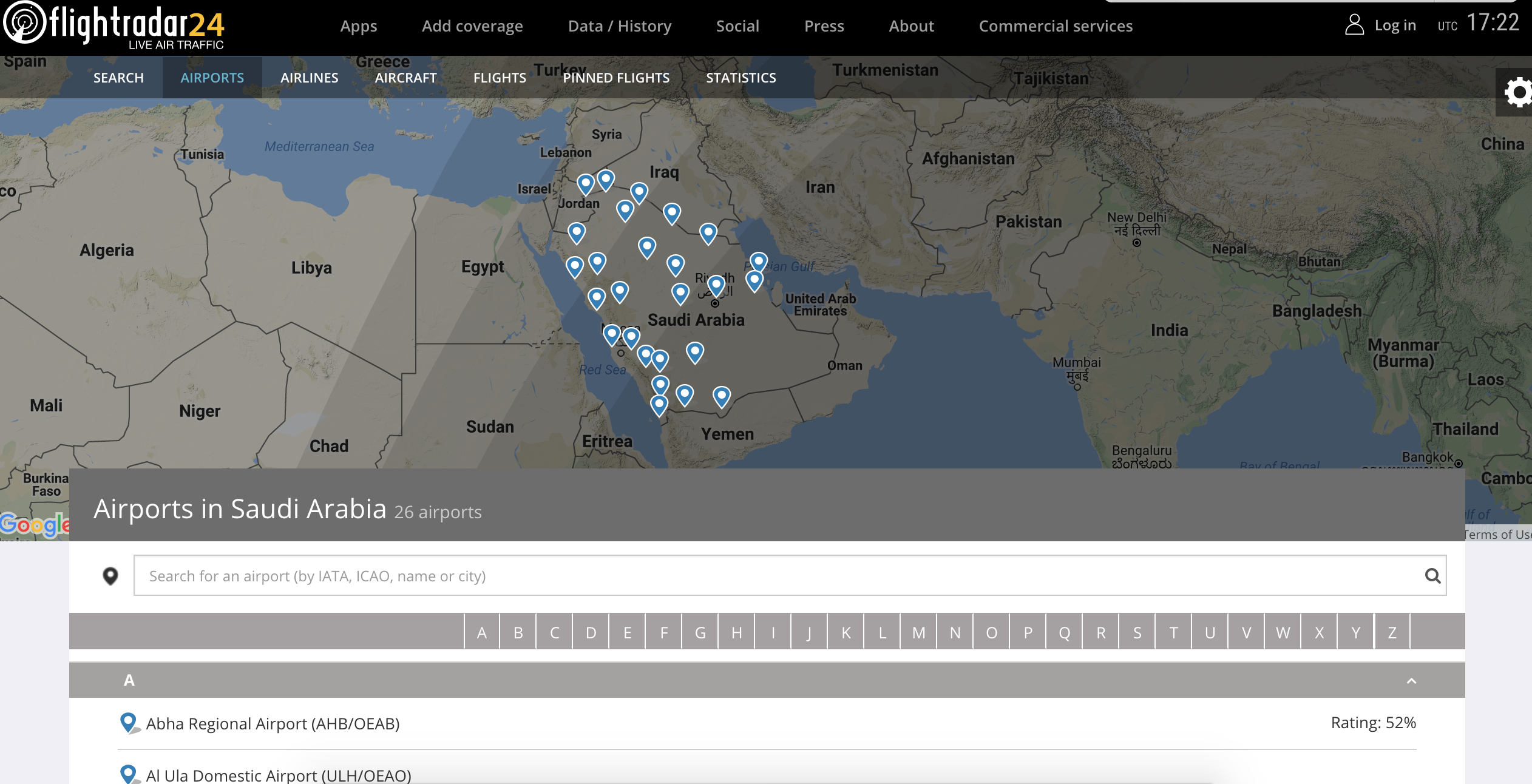 عبر الرابط التالي تستطيع الإطلاع على شاشة أي مطار بشكل سهل، فقط اكتب اسم المطار وراح يعطيك حالة الرحلات القادمة والمغادرة بشكل مباشر، وإذا ضغطت على أي رحلة يعطيك تاريخ رحلاتها