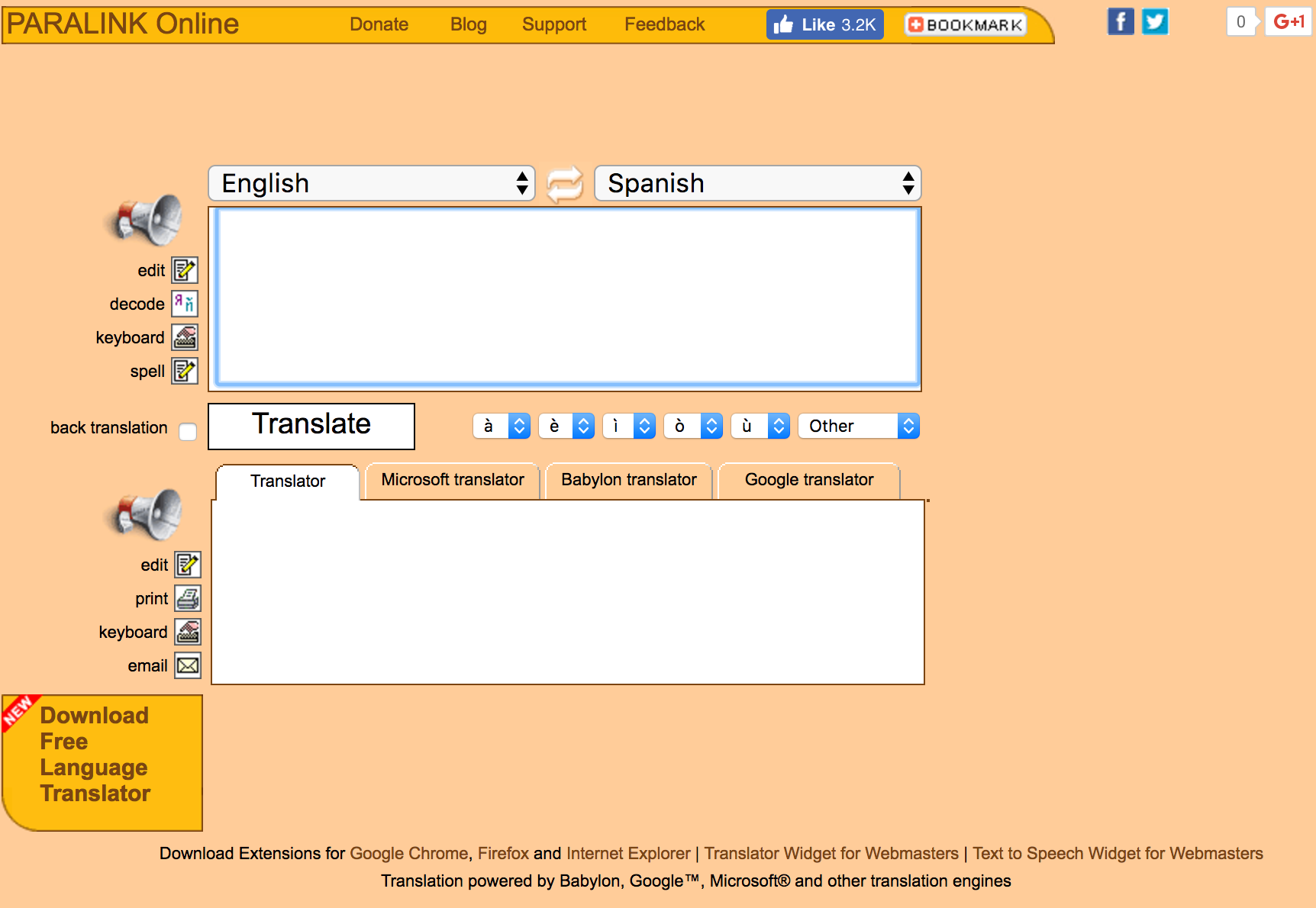 موقع رائع ومميز للترجمة؛ يقوم بجمع مواقع الترجمة "جوجل وبابليون ومايكروسوفت" في صفحة واحدة سهلة الإستخدام.