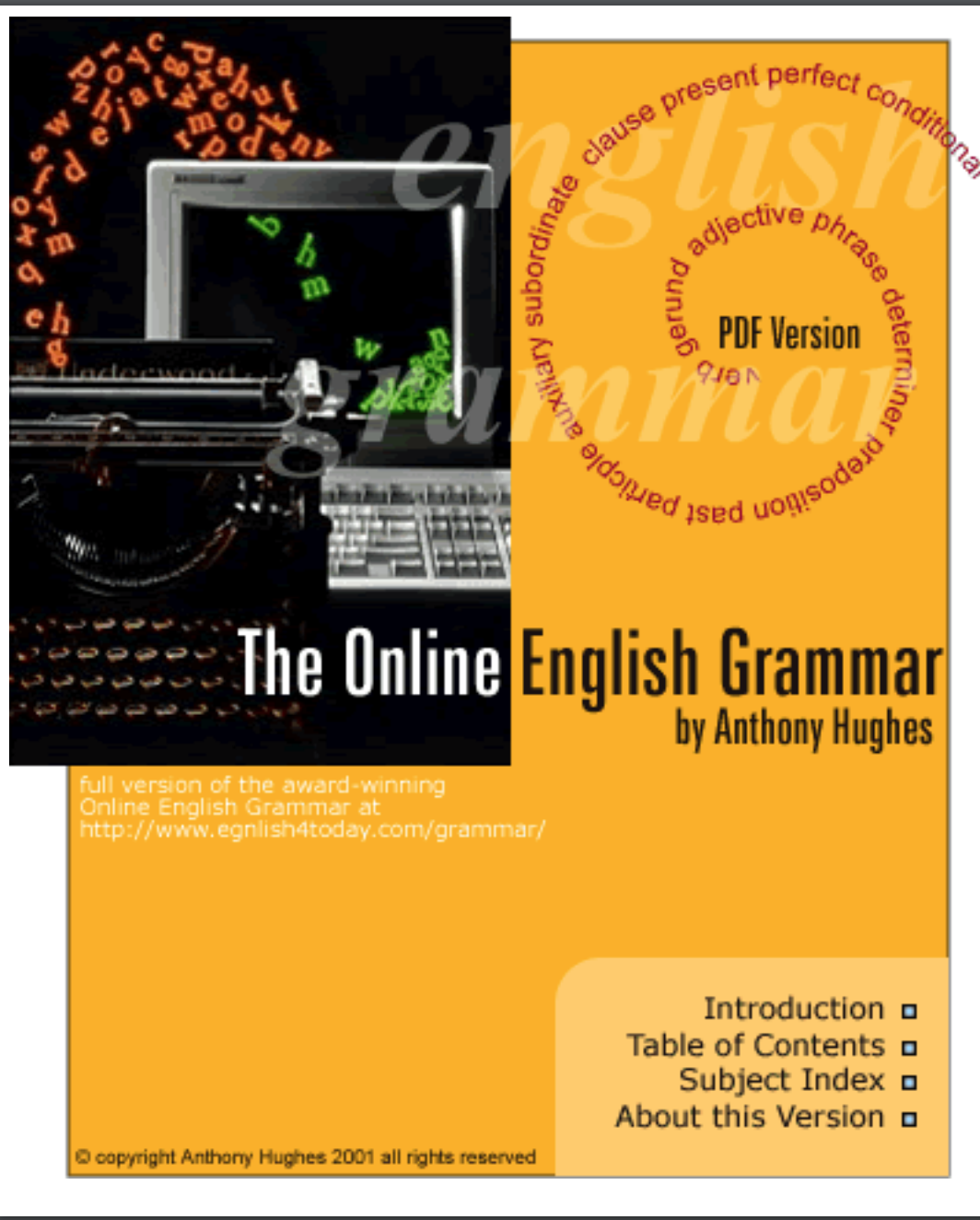 كتاب pdf مجاني يحتوي على ٢٦٠ صفحة يشرح "قواعد" اللغة الانجليزية بالتفصيل الممل، حجم الملف كبير نوعاً ما..