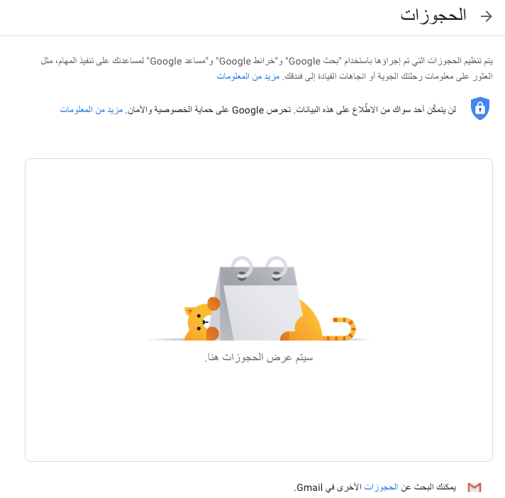 إذا كان لديك عدد من حجوزات الطيران والفنادق، ووصلك تأكيدها عبر بريدك في Gmail، فيمكنك استعراض جميع حجوزاتك من صفحة واحدة والاطلاع عليها دون الحاجة للبحث في البريد، سواء الماضية أو القادمة.