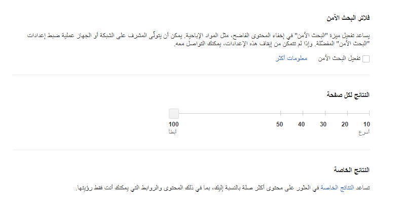 ولتقوم بتفعيله أدخل على الصفحة التالية وفعّل خيار البحث الآمن.