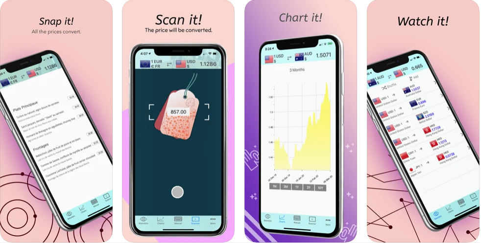 تطبيق يحوّل لك أي عملة في العالم إلى عملتك عبر كاميرا جوالك مباشرة، فقط تحتاج توجيه الكاميرا إلى السعر وسيقوم بتحويل العملة. مفيد للمسافرين خارج البلد وكذلك الذين يكثرون من الشراء عبر الانترنت..