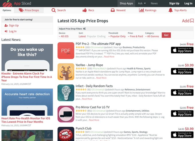 لأصحاب الآيفون والاندرويد: من أفضل الخدمات التي تخبرك بجديد الخصومات على التطبيقات في متجر تطبيقات هاتفك الجوال، حيث يمكنك عبرها معرفة التطبيقات التي أصبحت مجانية لفترة محدودة أو مخفّضة.