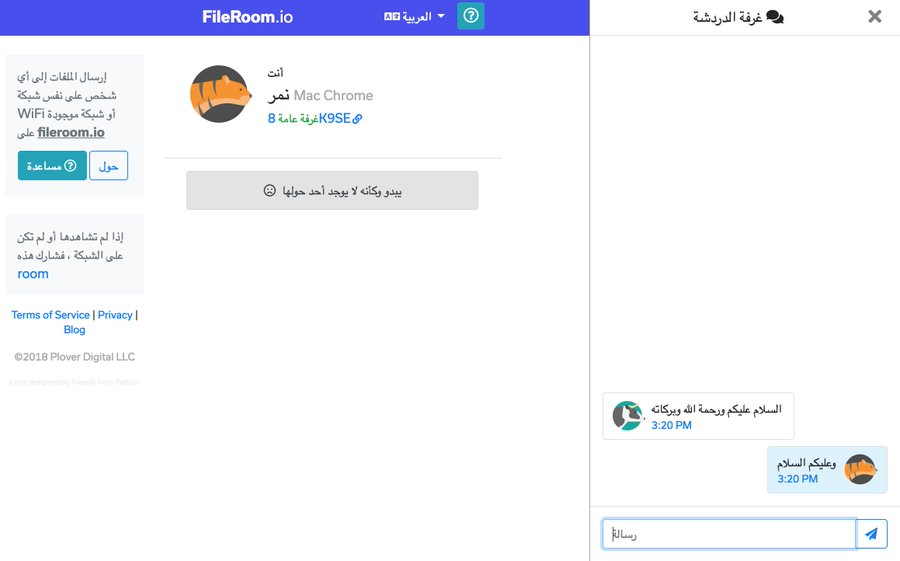 خدمة مميزة عربية تسمح لك بنقل الملفات بينك وبين أي شخص شابك معك في شبكة الوايرلس بسهولة، فقط كلكم تدخلون على هالموقع وتنقل له أي بيانات غير خاصة، كذلك بإمكانك إرسال أي نص عبر الدردشة