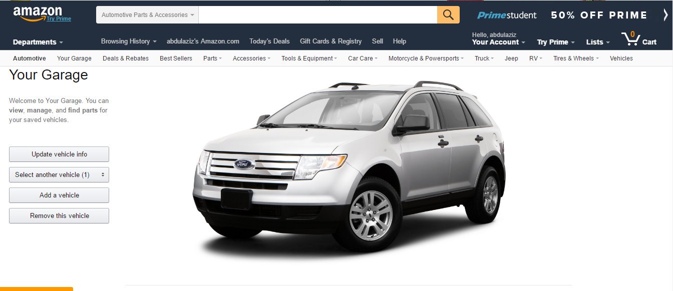 أضف نوع سيارتك في أمازون وعند أي عملية بحث لاكسسوارات السيارة أو قطع الغيار لا تخرج لك إلا نتائج بحث مناسبة لسيارتك.