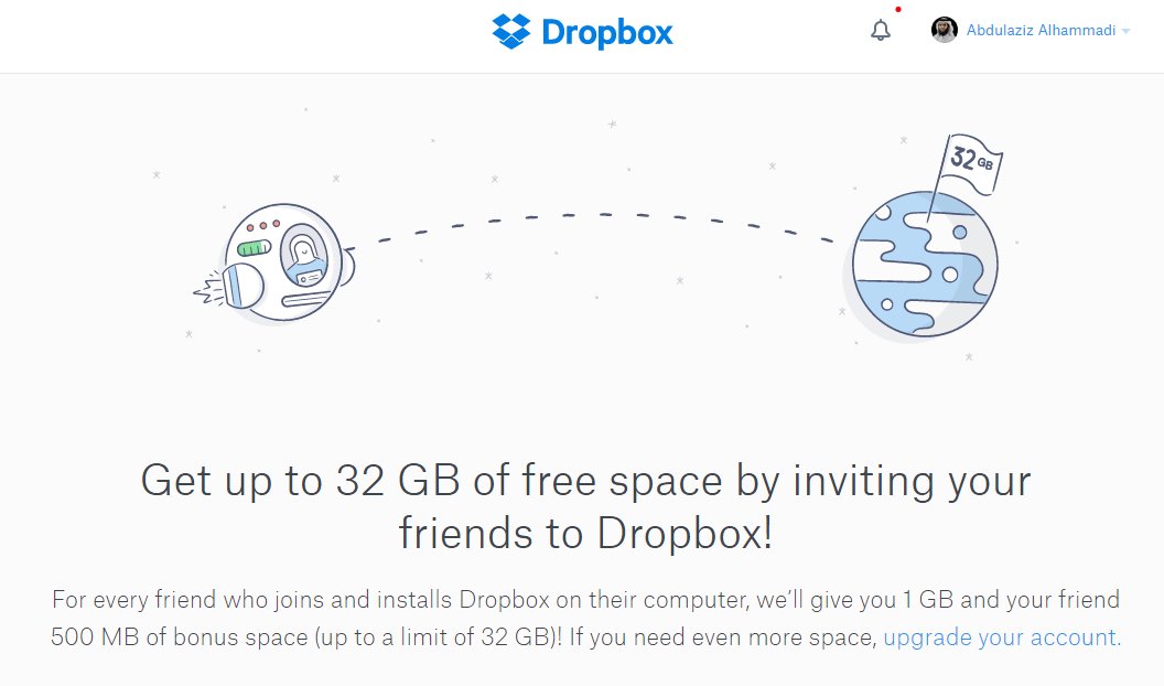 هل تعلم أنك إذا قمت بدعوة شخص للاشتراك بالدروبوكس ستحصل على مساحة إضافية 1GB لكل تسجيل عن طريقك؟.