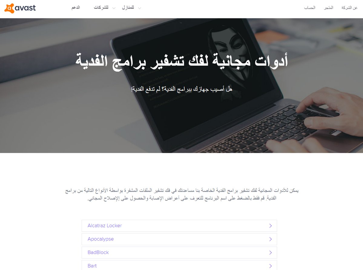 هل لديك جهاز أصيب بفيروس الفدية وتم تشفير كل الملفات فيه؟ شركة Avast رصدت أهم الأدوات التي تساعدك في حل هالمشكلة.
