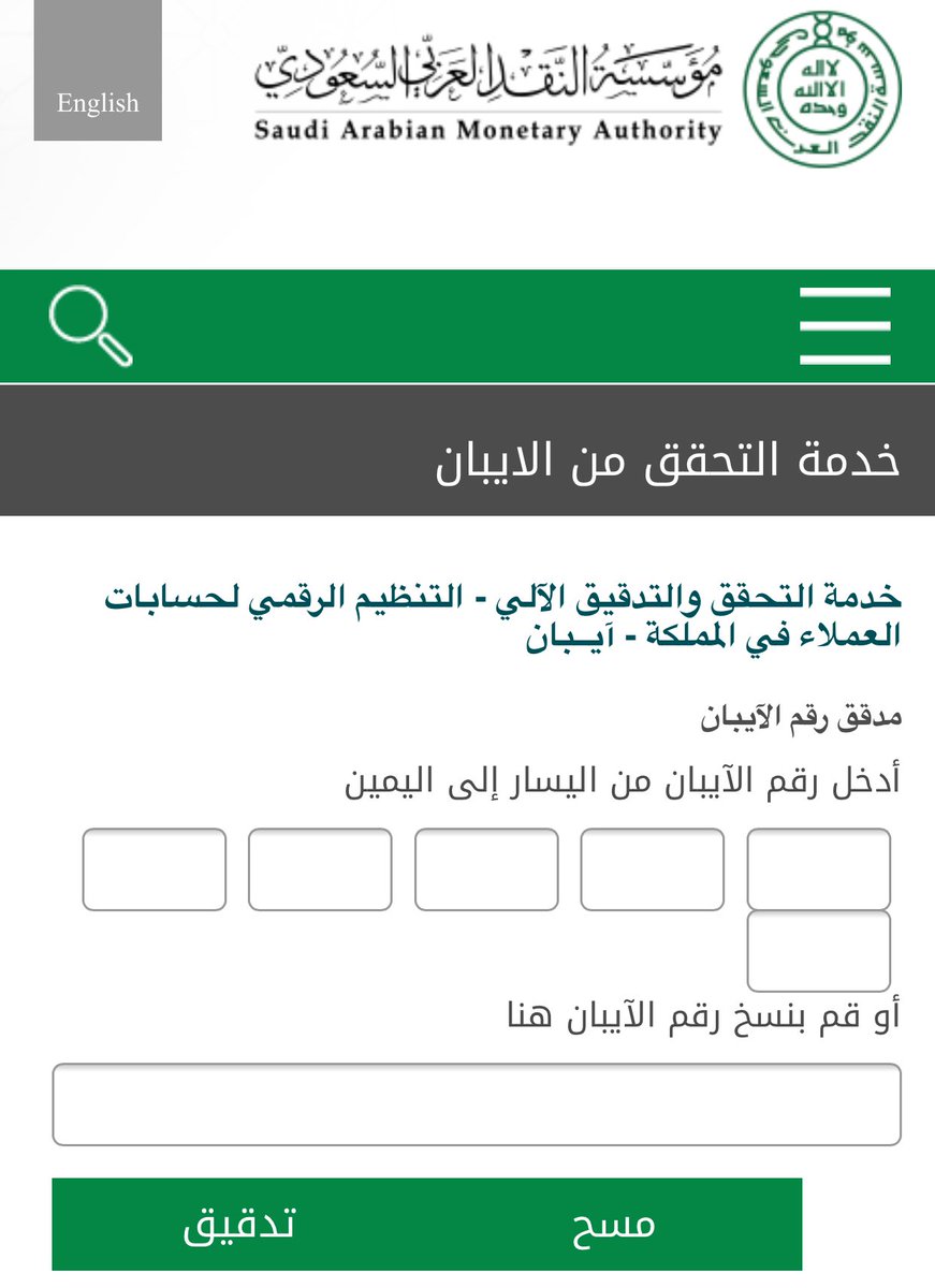 إذا أعطاك شخص رقم الآيبان الخاص به فيجب التأكد من صحته قبل أن تحول أي مبلغ عليه، وذلك عبر خدمة التحقق من مؤسسة النقد.