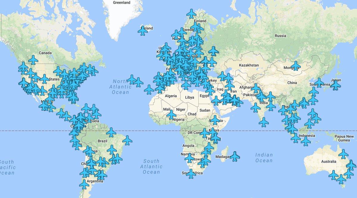 خريطة موضح فيها الأرقام السرية لشبكات الوايرلس بأكثر من ٢٦٥ مطار حول العالم، مفيدة لك إذا ذهبت لمطار لايوفر نت مجاني.