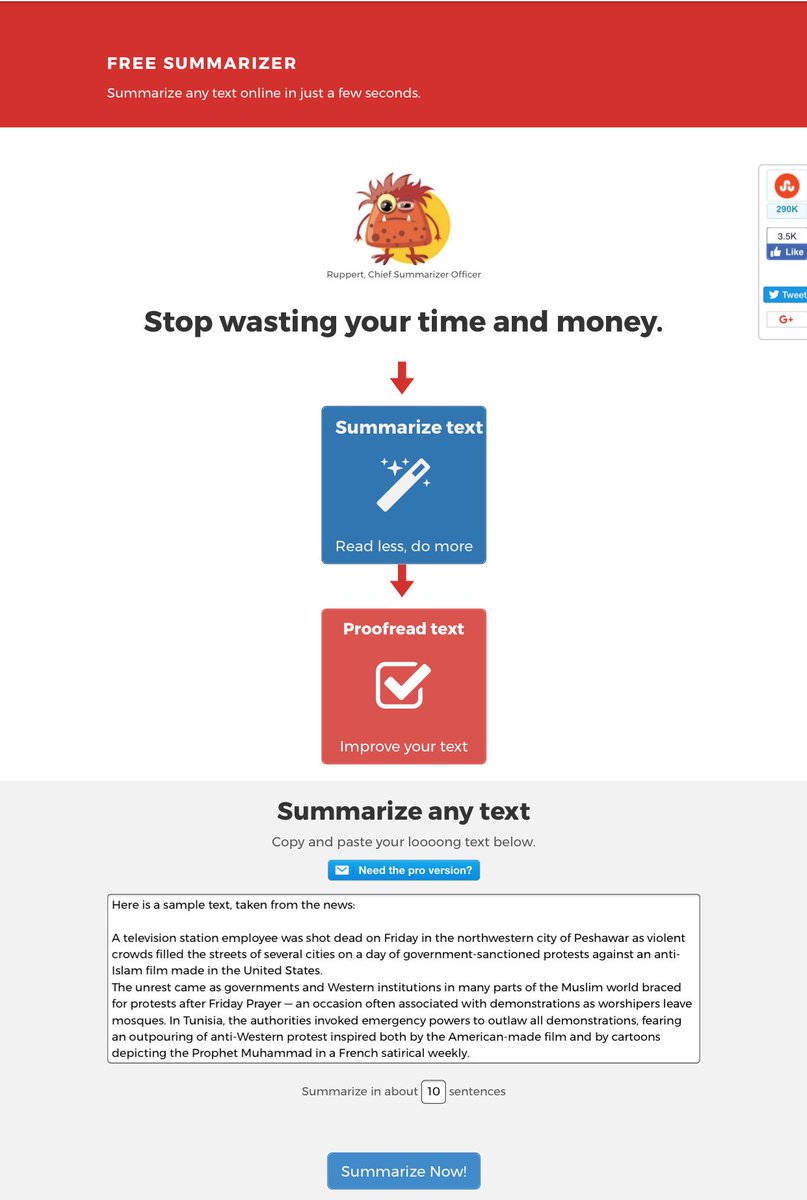 إذا لديك مقالة أو نص طويل باللغة الإنجليزية وتريد اختصاره، فقط الصقه بهالخدمة وحدد كم تريده في جملة وراح يختصره لك.