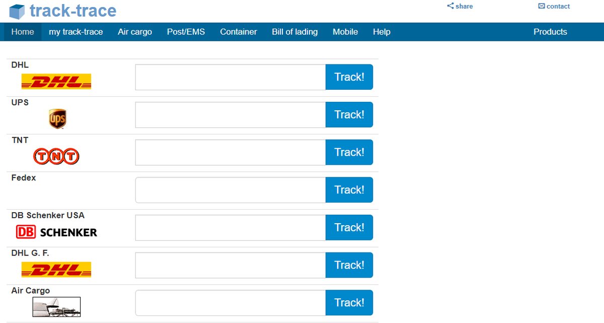 موقع كدليل لتتبع شحنتك في شركات الشحن، تكتب رقم شحنتك أمام أي شركة ويعطيك موقعها حالياً دون الحاجة لدخول موقع الشركة.