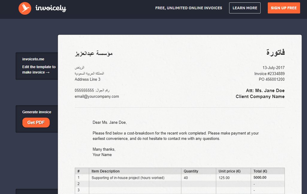 إذا أردت عمل فاتورة مستعجلة لأي شخص فالموقع التالي يعملها لك بسهولة ويوفر لك القوالب، يدعم الانجليزي فقط.