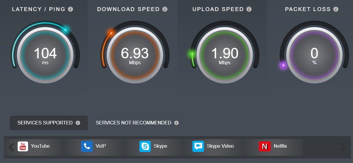 خدمة قياس سرعة الإنترنت بأسلوب جديد، بحيث تقيس السرعة والرفع ومقدار التشويش ونسبة البيانات المفقودة في اتصالك بالنت.