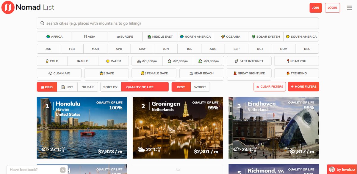 خدمة تصنف لك مدن العالم الشهيرة من ناحية الحياة والأمان وغيره، وكذلك تعطيك أفضل المدن للسفر في شهر معين بالسنة.