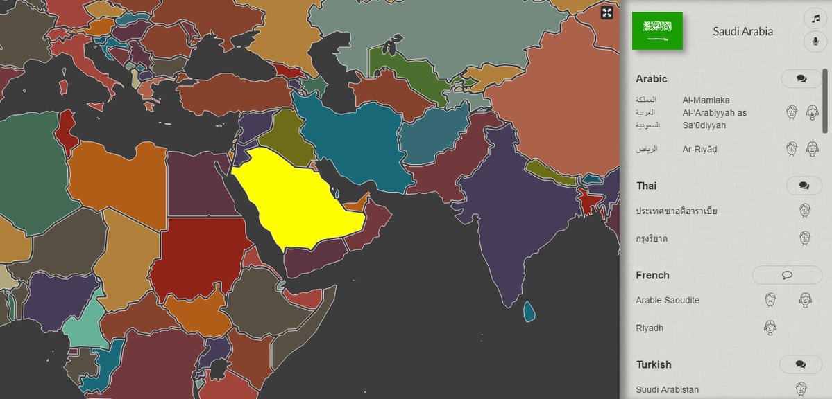 موقع يعطيك نطق أسماء الدول والمدن بجميع لغات العالم، بالرابط التالي النطق الصحيح للسعودية بالكثير من اللغات.