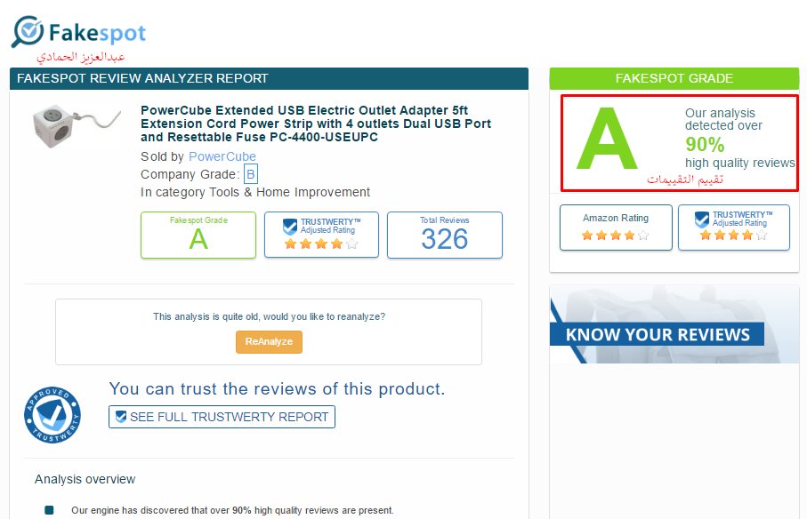 قبل ما تشتري من أمازون أي غرض، أنصحك تضع رابطه في الموقع التالي لتقييم صحة التقييمات الي عليه وأنها تقييمات حقيقية.