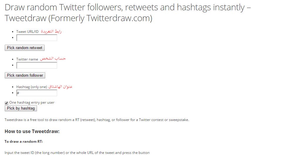 موقع مفيد للمسابقات في تويتر، يعمل لك قرعة داخل الهاشتاق أو الريتويت أو الردود وبضغطة زر.