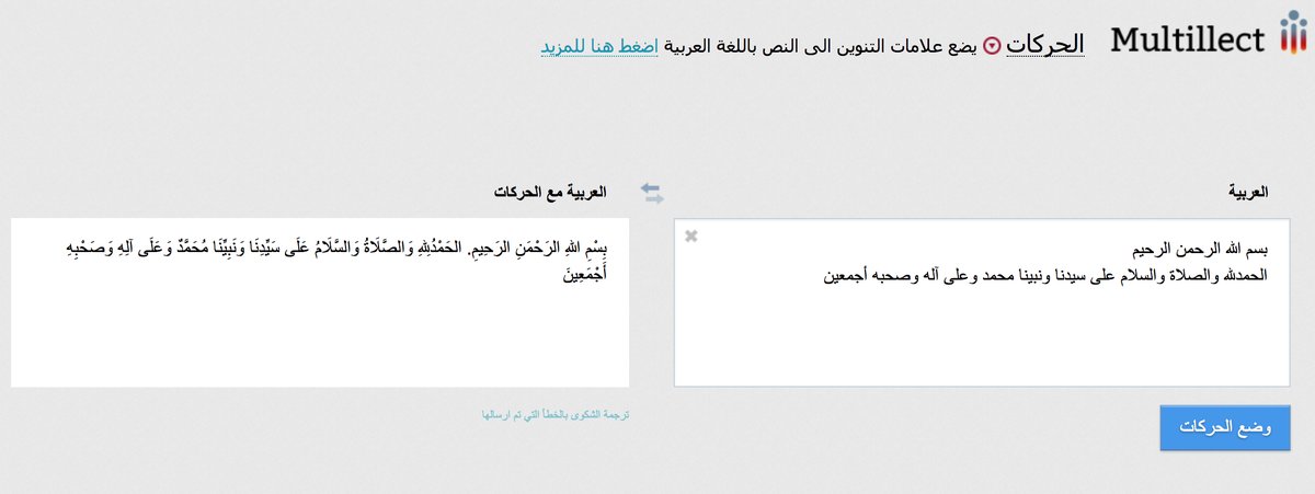 موقع عربي تكتب فيه أي كلمة فيقوم تلقائياً بإضافة "الحركات" على الحروف بشكل سريع جداً، "دقته تقريباً ٩٠٪"..