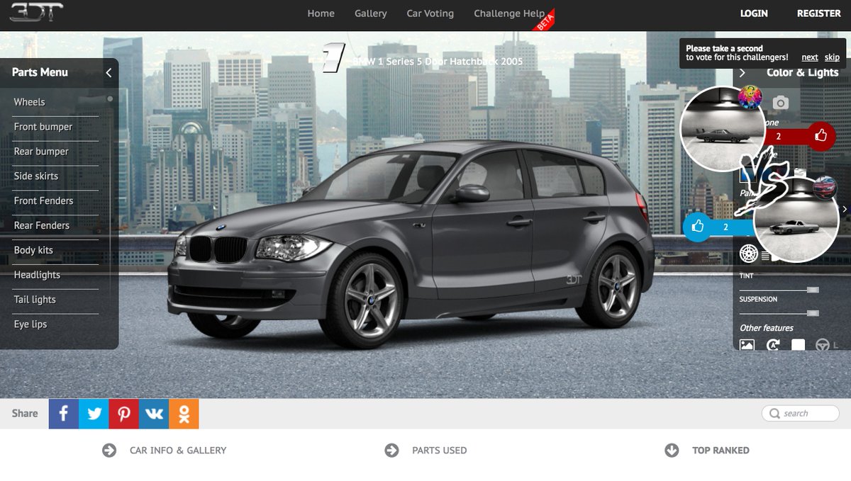 موقع رائع يوفر لك إمكانية تعديل أي سيارة وتغيير شكلها وألوانها وقطع غيارها، وطريقة التعامل معه سهل وسلس جداً.