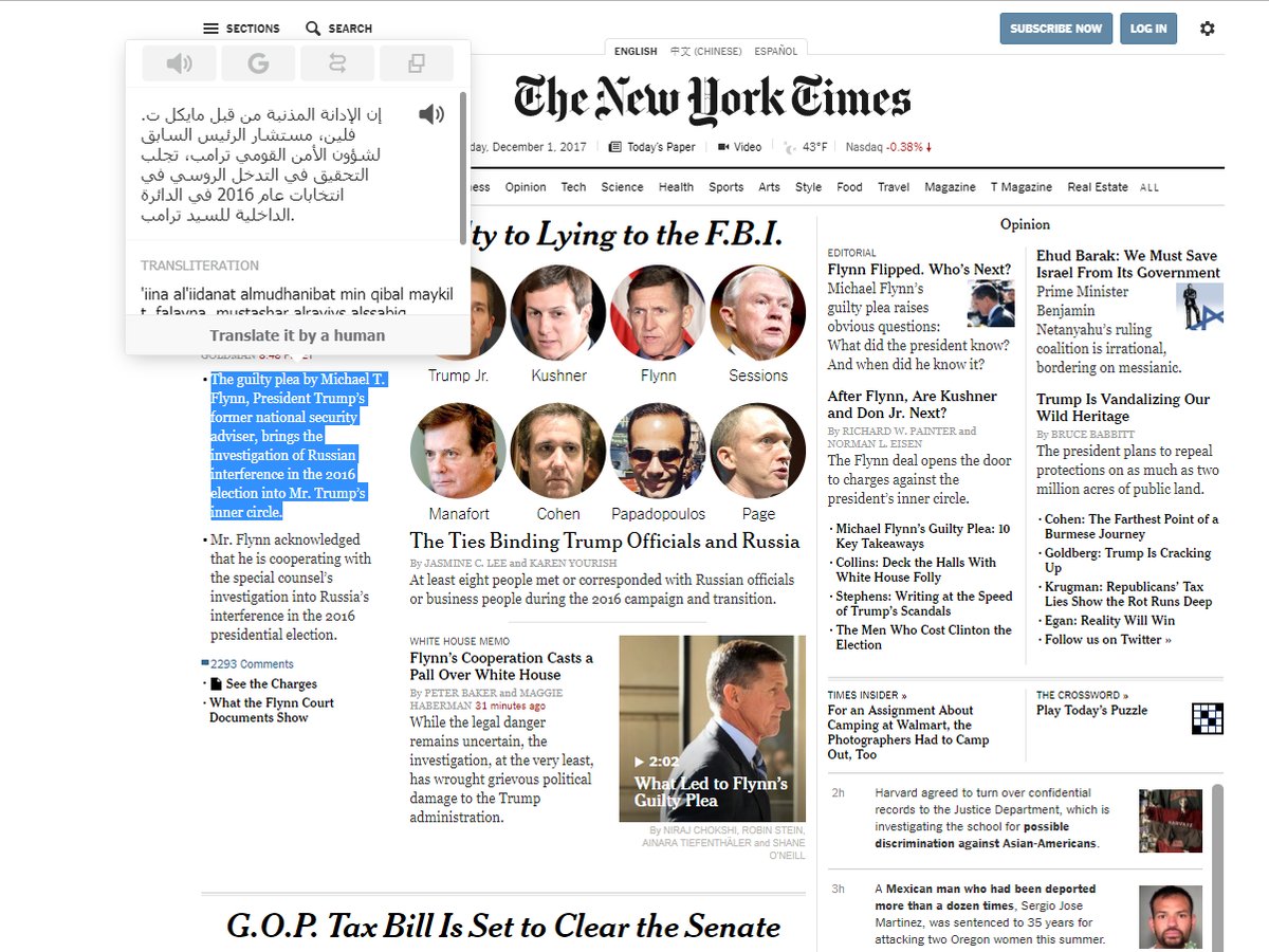 إضافة مميزة لمتصفح جوجل كروم تساعدك في ترجمة أي كلمة أو جملة تظهر لك أثناء التصفح بأي لغة، بعد تنصيبها فقط تضغط بزر الفأرة الأيمن لترجمة الكلمة وستظهر الترجمة في نافذة صغيرة.