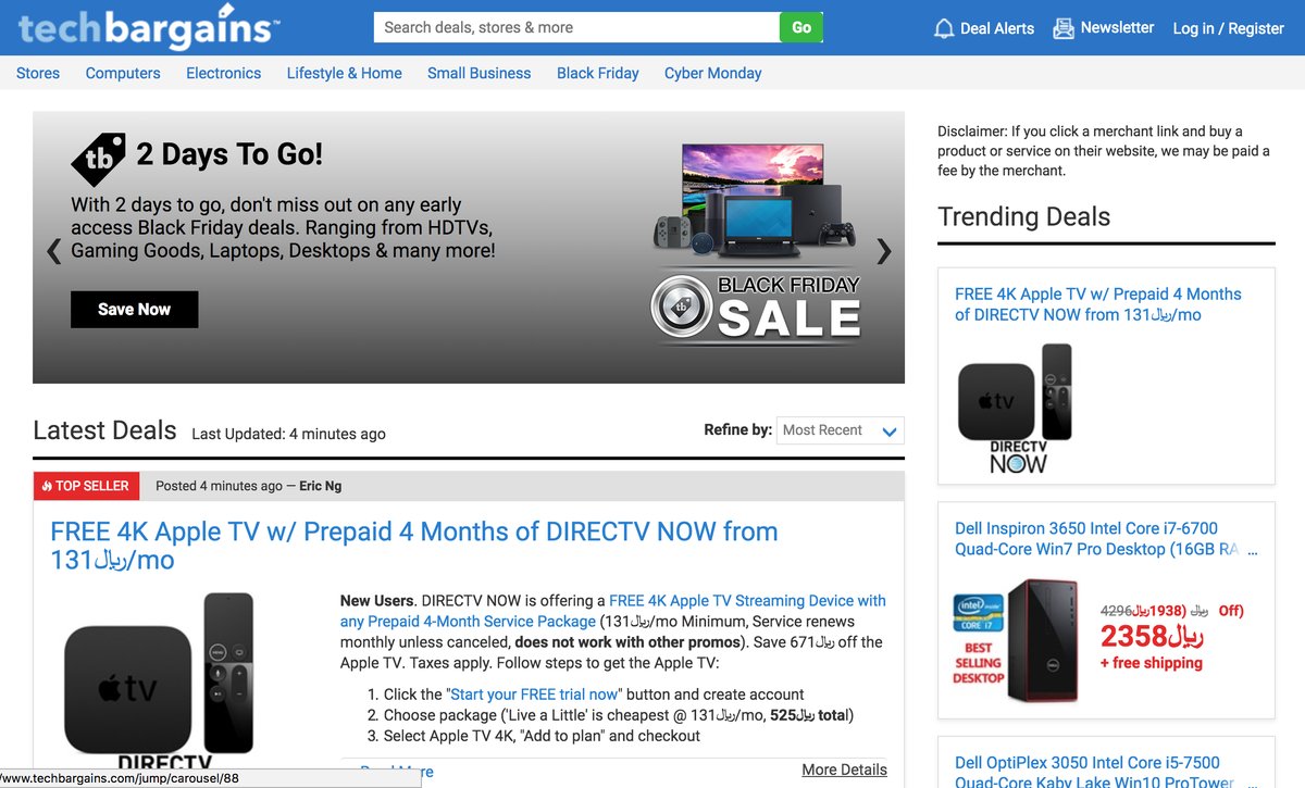 الموقع التالي يعرض لك أهم العروض والخصومات في مئات المتاجر على الأجهزة والأنظمة والبرامج التقنية، مع السعر ومقدار الخصم.