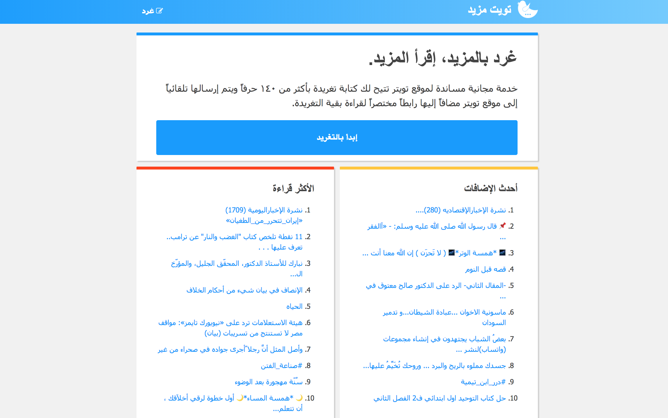 خدمة مجانية مساندة لموقع تويتر تتيح لك كتابة تغريدة بعدد مفتوح من الحروف ويتم إرسالها تلقائياً إلى موقع تويتر مضافاً إليها رابطاً مختصراً لقراءة بقية التغريدة..